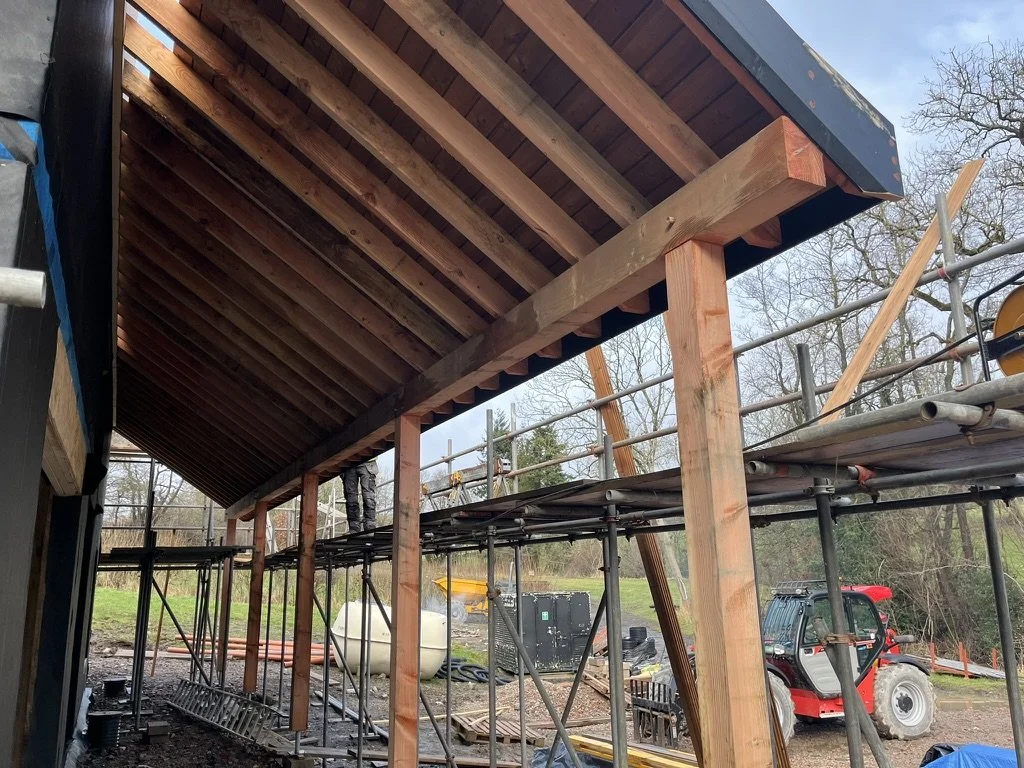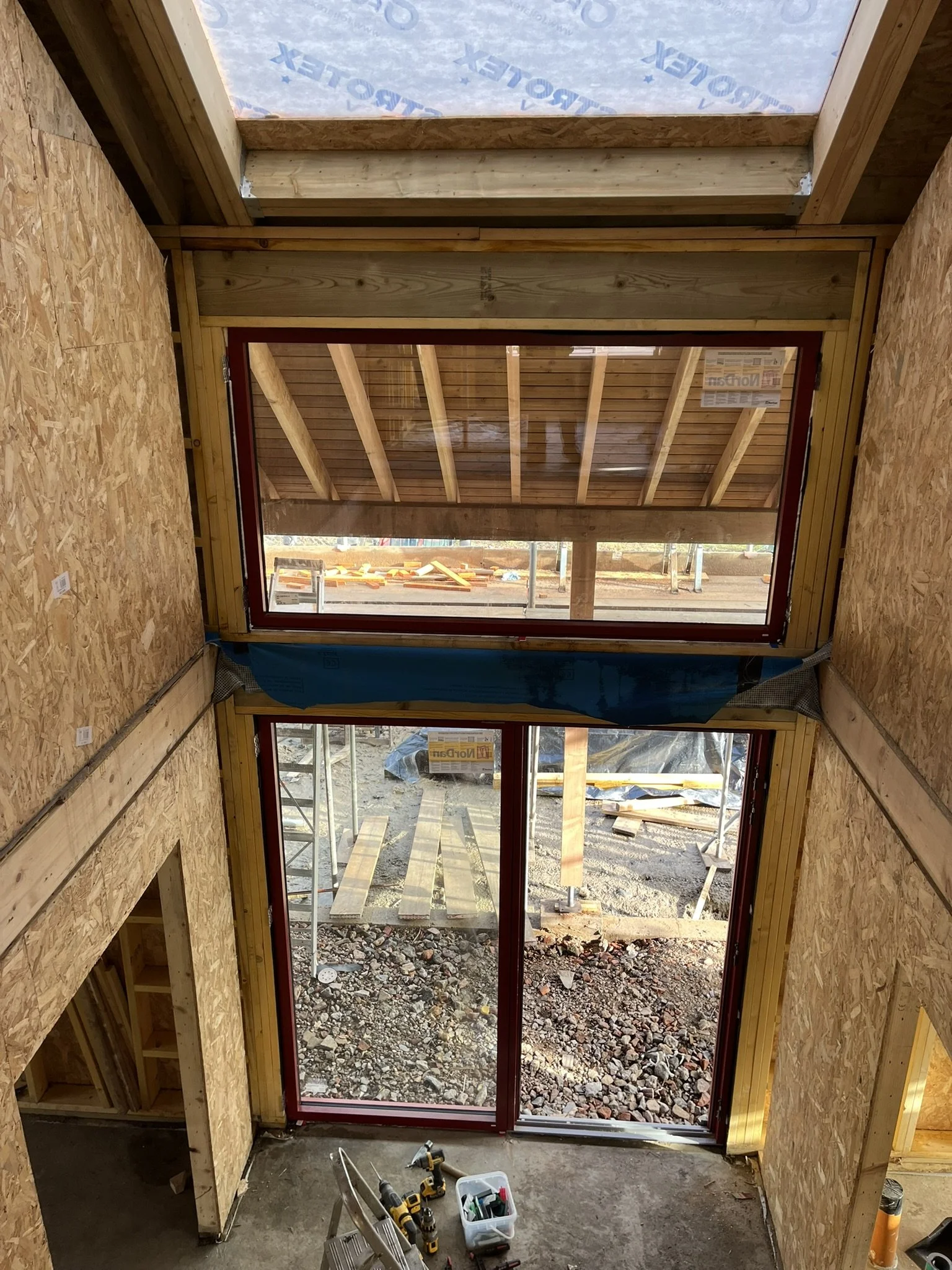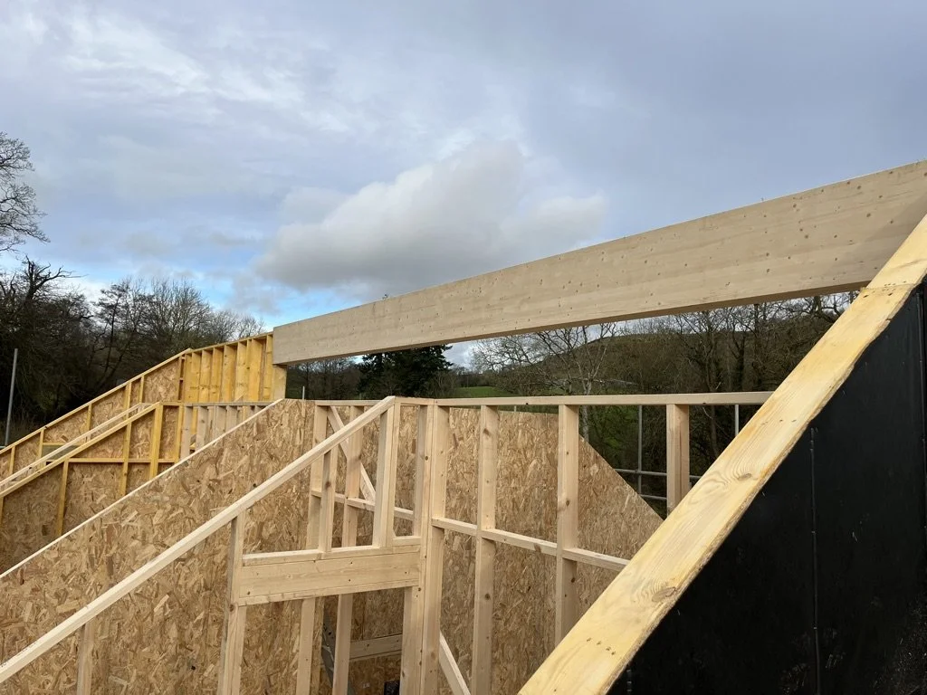 Fully engineered design, manufacture and supply of a 140mm timber frame wall and roof superstructure ready wood-fibre and rockwool insulation.