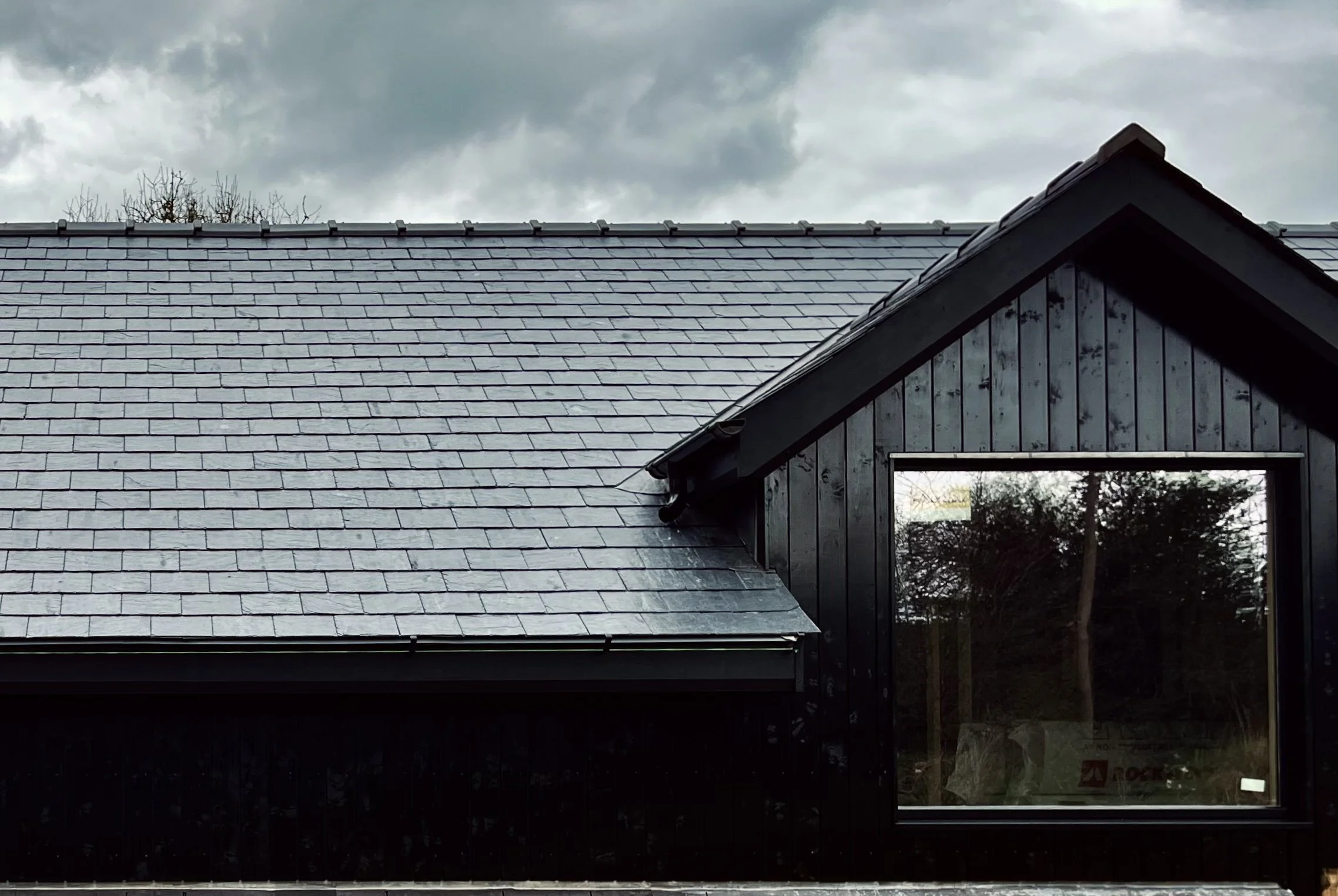 Roof coverings, roof lights and solar panels installation. Powder-coated steel gutters and downpipes, and fascias and barge.